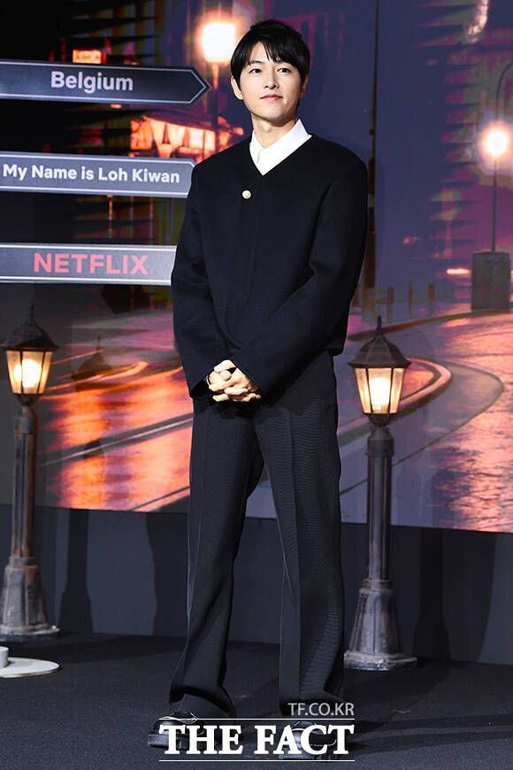 배우 송중기가 27일 오전 서울 마포구 호텔 나루 서울 엠갤러리에서 열린 넷플릭스 영화 '로기완' 제작발표회에 참석해 포즈를 취하고 있다. /서예원 기자