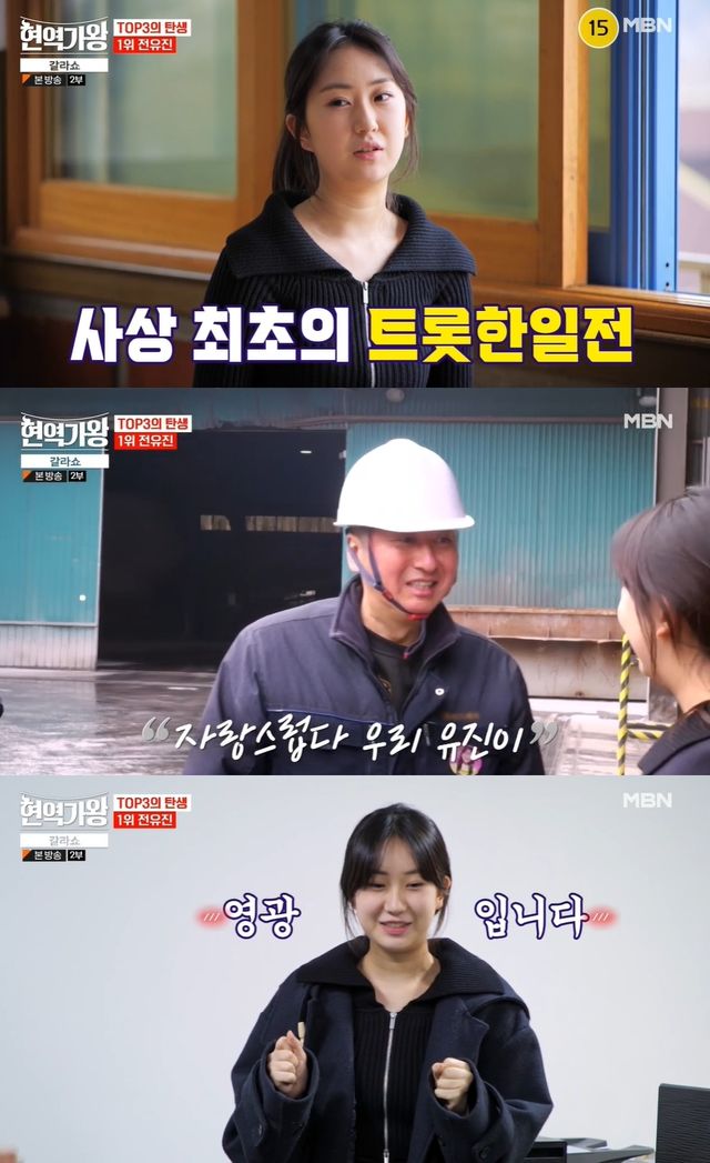 이에 전유진은 "현역가왕이 된 게 감사하고 기쁘지만, 먼저 탈락한 분들도 있고 1위가 주는 책임감 때문에 웃지 못했던 것 같다"라고 털어놨다.