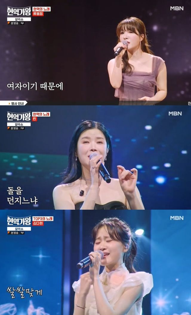 27일 방송된 MBN '현역가왕 갈라쇼-현역의 노래'(이하 '현역가왕 갈라쇼')는 '현역가왕' TOP7과 강혜연, 김양, 두리, 요요미, 조정민, 김산하가 모여 못다 한 무대를 전했다.