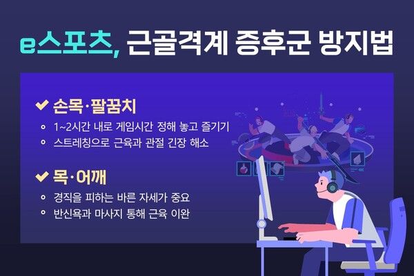부평힘찬병원 정형외과 김태섭 원장은 “프로게이머뿐만 아니라 취미로 PC와 스마트폰으로 게임을 즐기는 일반인들도 근골격계 통증을 겪는 경우가 많다”라며 “게임 도중 가벼운 스트레칭으로 관절과 근육의 긴장을 풀어주고, 시간을 정해 놓고 무리하지 않는 등 특정 자세를 장시간 반복하고 유지하는 것을 조심해야 한다”라고 말했다.