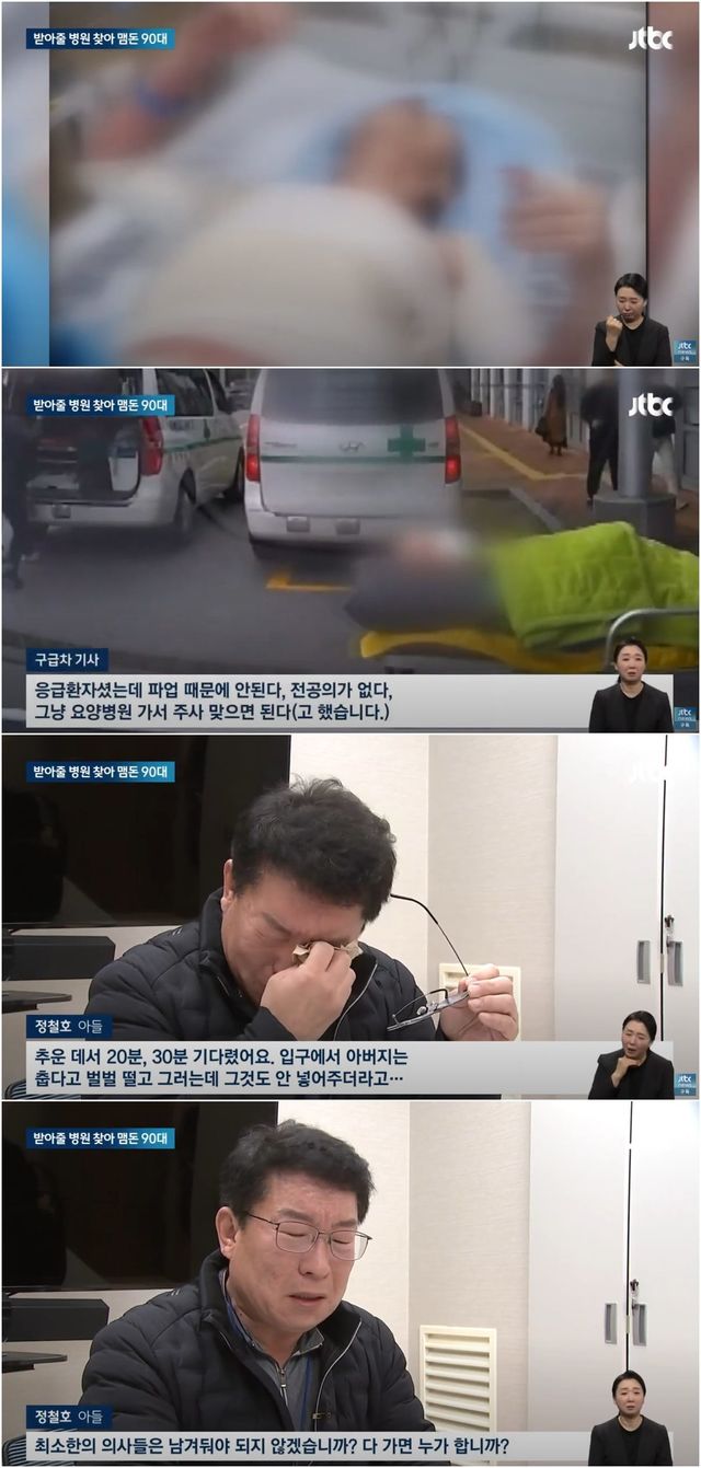 의대 정원 확대 정책 갈등으로 인한 의료 파업 때문에 90대 말기 암 환자가 치료를 제때 받지 못해 심각한 상황이 처한 사연 / 유튜브 'JTBC 뉴스'