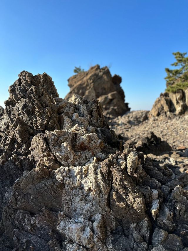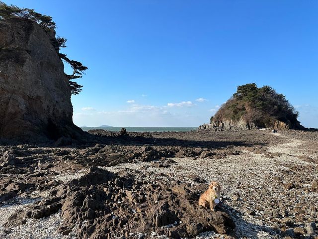 두 개의 바위산이 존재감 넘치는 모습으로 나란한 수평선을 바라보며 사람들의 짧은 탄식이 이어진다. “와, 바위 한 번 멋지다!” 수려한 풍광에 시선을 빼앗긴 사람들은 이어 약속이나 한 듯 두 바위를 향해 발걸음을 옮긴다. 사방 트인 바다에서 불어 오는 겨울 바람이 매서운데도, 바위를 가까이에서 보려는 사람들의 행렬이 바닷길따라 이어진다. 물이 빠져 육지와 땅이 연결되는 간조 때만 가능한 풍경이다. 할미할아비 바위에는 전해오는 이야기가 있다. 신라 흥덕왕 때 장보고 장군의 명령으로 전장으로 떠난 남편, 승언 장군을 기다리던 미도 부인이 그리움을 안고 그대로 망부석이 된 것. 그 옆으로 큰 바위가 솟아올라 할미 바위를 지켰는데, 그게 바로 할아비 바위라고. 사람들은 할미할아비 바위를 바라보며 부부의 지극한 사랑에 대해 이야기하고, 지는 해를 바라보며 미도 부인의 애틋한 마음을 떠올린다. 변산의 채석강, 강화도의 석모도와 함께 ‘서해의 3대 낙조’로 손꼽는만큼 환상적 노을을 배경으로 ‘견생샷’을 남기는 것도 좋겠다.