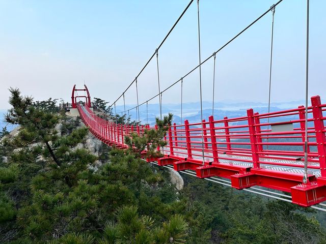 더 흥미로운 것은 태을암 뒤편에 설위설경 굿 의식이 벌어지는 터가 계단으로 이어져 있다는 것. 고려 불교와 조선 도교, 무속 신앙의 기운이 함께 흐르는 비범한 땅이다. 반면 정상으로 향하는 등산로는 완만하고 쉽다. 태을암에서부터 태안 시내가 내려다보이는 데크 계단을 따라 약 20분간 올라가면 평평한 암반에 둘러싸인 정상석이 보인다. 띄엄띄엄 만나는 전망대에서 반려견과 피크닉을 즐기고, 정상 아래 두 개의 봉우리를 잇는 구름다리도 걸어보자. 지상 19m 높이에 길이 74m의 현수교에서 탁 트인 태안의 리아스식 해안과 백화산 능선을 양쪽으로 조망하는 재미가 크다.