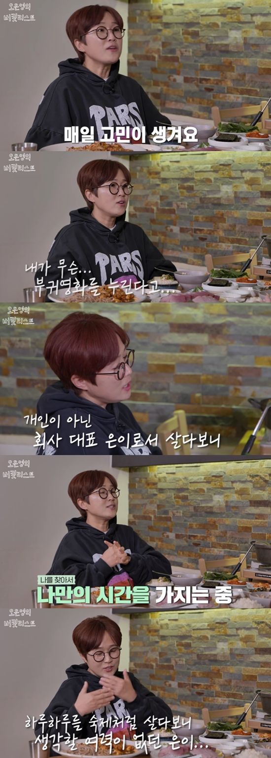 이날 송은이는 "CEO하면서 고민거리가 뭐냐"라는 오은영 박사의 질문에 "고민은 매일 있다. 옛날에는 '내가 무슨 부귀영화를 누린다고 놀러가지도 못하고' 이런 생각을 매일 했다"고 털어놨다.