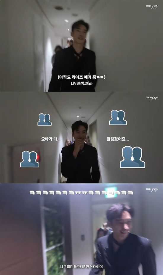 이어 엘리베이터에 탑승해서도 "라이즈? 라이즈 멋있는데? 옷 딱 맞춰가지고 퍼포먼스 하는데 너무 멋있더라"고 감탄한 그는 "나 지금 원빈 가까이에서 봤거든? 대박이더라. 너무 잘 생겼더라"고 감탄했다.