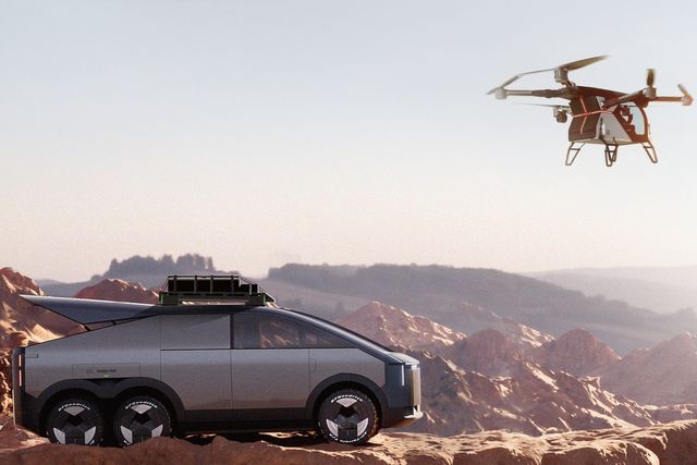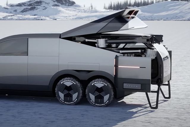 이런 특징들은 앞서 이야기했던 이상한 점들도 이해하게끔 만든다. 뒷바퀴가 4개인 것은 무거운 드론을 싣고자 중량 분산 목적으로 고안했으며, 투박한 형태도 드론 적재를 위한 것으로 해석된다. 그렇게 목적성을 가지고 디자인된 차체가 테슬라의 사이버트럭과 상당히 닮았다.