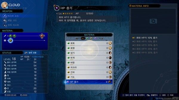 ‘파이널판타지7 리메이크’를 플레이해봤던 유저들이라면 잠시 기억을 되살려 보자. 게임에서 마테리얼을 착용하고 사냥을 해 AP를 획득한 다음 마테리얼이 업그레이드 되는 시스템을 기억할 것이다. 이번 작품에도 이는 마찬가지다. 전작에서 고생끝에 모든 마테리얼 레벨을 올린 기억이 있다면 가장 먼저 해야할 일이 떠오를 것이다. 모든 캐릭터에 가능한 한 많은 마테리얼 슬롯을 부착하고, 가능한 한 많은 마테리얼을 착용한다. 세상에 나쁜 마테리얼은 없다. 쓰레기처럼 보일지라도 가득 채워서 AP를 획득해 레벨을 올려 두는 것이 가장 중요하다.