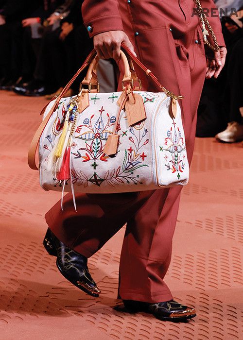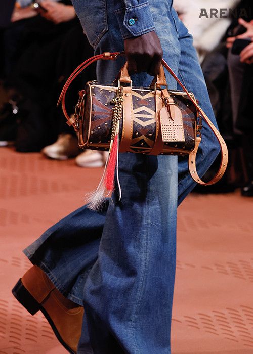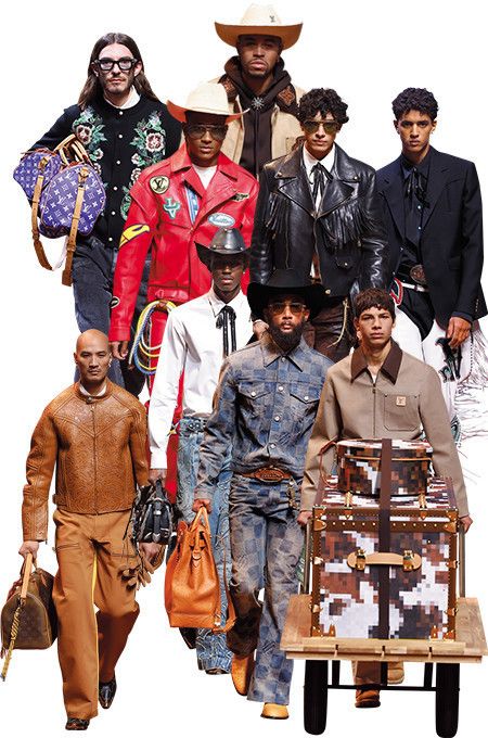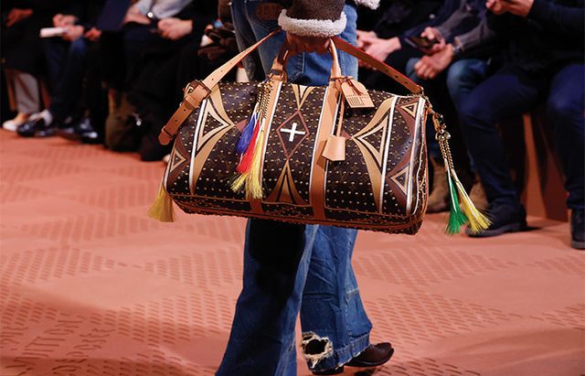 무엇보다 런웨이에서 가장 눈에 띈 건 이제껏 본 적 없는 다양한 소재와 디테일이 적용된 백 라인. 스피디는 소뮈르 백과 함께 스터드 장식된 새들백 형태, 혹은 데미에 나벳 스터드를 더하기도 했다. 스티머는 다미에 패턴이 깃듯 버펄로 체크 캔버스 소재, 에이지드 모노그램 캔버스, 브러시드 모노그램, 색이 바랜 데님 다미에 패턴, 악어가죽 모노그램, 타조 가죽 모노그램, 누벅 악어가죽 소재 등 그야말로 방대한 종류의 소재와 디자인으로 재탄생한 백 라인이 등장했다. 한 장면도 놓칠 수 없는 서부 영화의 한 부분처럼 거침없이 달려온 쇼는 말미부터 피날레에 이르기까지 북미 전역의 원주민 출신 가수들로 구성된 파우와우 그룹 네이티브 보이스 오브 레지스턴스(Native Voices of Resistance)의 공연이 이어지며 멈출 수 없는 여흥을 남겼다. 그리고 역시, 퍼렐은 기대를 저버리지 않았다. 피날레를 장식한 네이티브 보이스 오브 레지스턴스를 비롯해 멈퍼드 앤 선스와 퍼렐이 무대에 올라 이번 쇼의 사운드트랙이었던 ‘Good People’ 공연을 펼치는 등 화려한 애프터 파티로 파리 패션위크의 첫날 밤을 근사하게 장식했다.