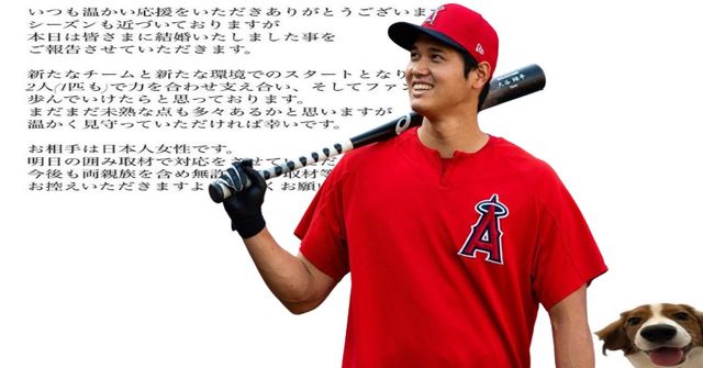29일 오타니는 자신의 SNS에 일본어와 영어로 입장문을 올렸다. 그는 "항상 따뜻한 응원 보내주셔서 감사하다"며 글을 시작해 "오늘 여러분 모두에게 결혼 했다는 사실을 알려드린다."고 깜짝 고백했다.