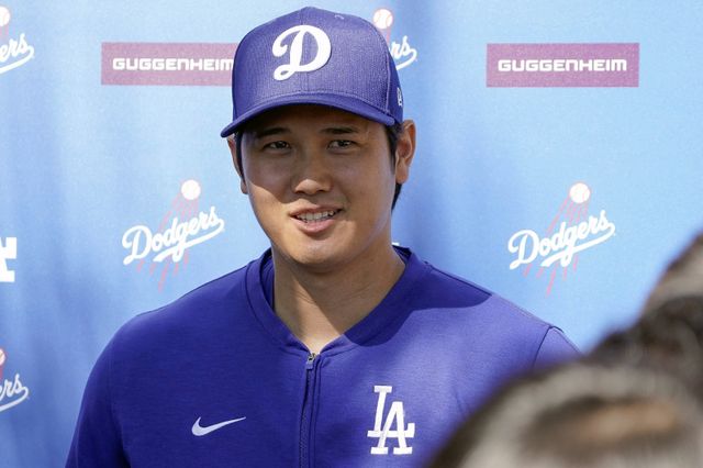 오타니는 1일(한국시간) 미국 애리조나주 글렌데일 캐멀백 랜치에서 열린 미국 메이저리그(MLB) 로스앤젤레스(LA) 다저스의 스프링캠프 훈련을 앞두고 자신의 결혼 발표에 대한 기자회견을 가졌다.