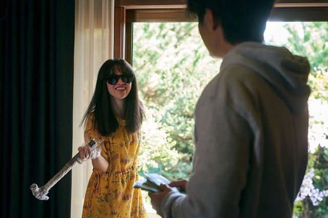 커다란 선글라스에 노란 원피스, 안내견과 함께 등장한 선여옥. 포털사이트에 ‘살인자ㅇ난감’을 검색하면 옆에 ‘선글라스’가 연관검색어로 뜰 정도다. 국내는 물론 해외 시청자에게도 눈도장을 찍었던 선글라스를 벗는 장면은 정이서의 아이디어였다고.