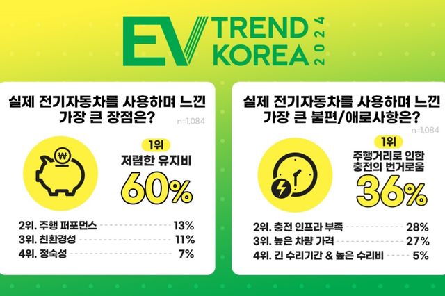 [오토트리뷴=김동민 기자] EV 트렌드 코리아 2024 개최 전 실시한 설문조사 결과가 나왔다. 설문에 따르면 소비자들은 저렴한 유지비를 전기차의 최대 장점으로 꼽았다. 반면 짧은 주행거리로 인한 충전의 번거로움은 구매를 꺼리는 사유로 밝혀졌다.