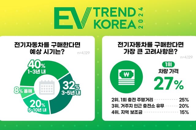 EV 트렌드 코리아 2024 사무국은 사전에 진행했던 전기차 관련 설문조사 결과를 28일 공개했다. 이 설문조사는 지난 6일부터 26일까지 3주간 치러졌으며, 총 5,942명이 참가했다. 이는 작년 설문조사 대비 1.7배 이상 상승한 수치다.