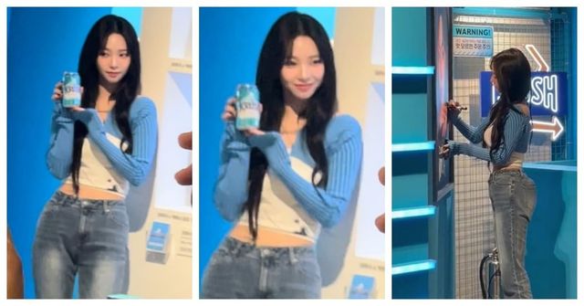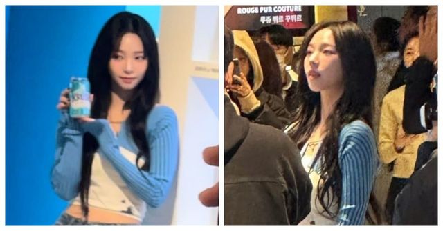 지난 29일 서울 잠실 한 백화점의 맥주 팝업 스토어에 등장한 카리나 / 온라인 커뮤니티 '에펨코리아'
