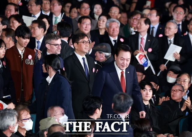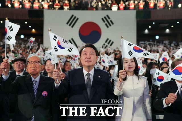 [더팩트ㅣ박숙현 기자] 윤석열 대통령은 1일 취임 후 두 번째 열린 3‧1절 기념식에 참석해 3·1운동 정신을 기렸다. 1년 전과 달리 김건희 여사는 모습을 드러내지 않았다.