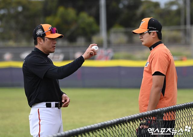 (엑스포츠뉴스 조은혜 기자) '대선배' 류현진의 합류에 한화 이글스 김서현이 다가갈 타이밍을 찾고 있다.