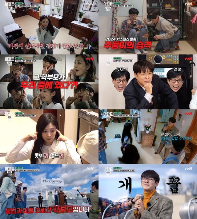 입주민들이 한 명씩 전화로 지령을 전달받은 가운데 ‘유가네’ 유재석, 제니, 이정하와 ‘차가네’ 차태현, 오나라, 양세찬은 ‘도깨비 아파트 탈출하기’ 게임으로 단서 획득에 열을 올렸다. 특히 제니는 미션 성공은 물론 ‘차가네’를 교란시키며 게임을 주도하고 팀의 승리를 견인했다.