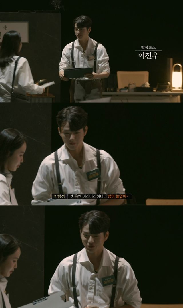 이진우는 1일 공개된 9, 10화 '풍무 회장 살인 사건' 에피소드에서도 존재감을 발휘했다. 그는 사건 현장을 둘러보고 있는 '박탐정' 박지윤에게 다가가 "피해자 신원 및 피해자와 연관된 용의자 다섯 명 관련 정보"라며 사건 파일을 넘겼다.