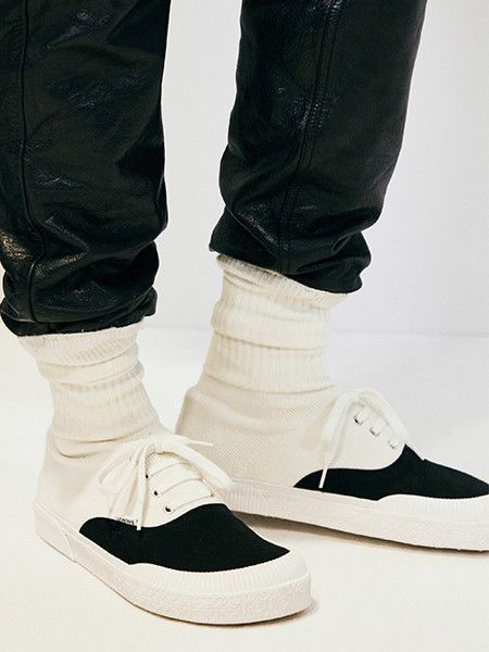 또 런웨이에선 눈치챌 수 없었는데, 알고 보니 스니커즈는 양말에, 양말은 바지에, 바지는 재킷이나 코트에, 그리고 벨트는 팬츠에 연결되었다고. 이 또한 무질서하게 뒤엉킨 현실을 반영한 ‘호킨스식’ 콜라주.