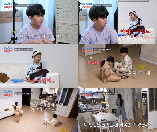 기분이 상한 가인이는 레고를 아무렇게나 채록이에게 던져주고 가버렸다. 누군가의 편을 들기 애매한 상황, ‘남매맘’ 김슬기의 아이들 싸움 대처법은 선공개 영상에서 볼 수 있다.