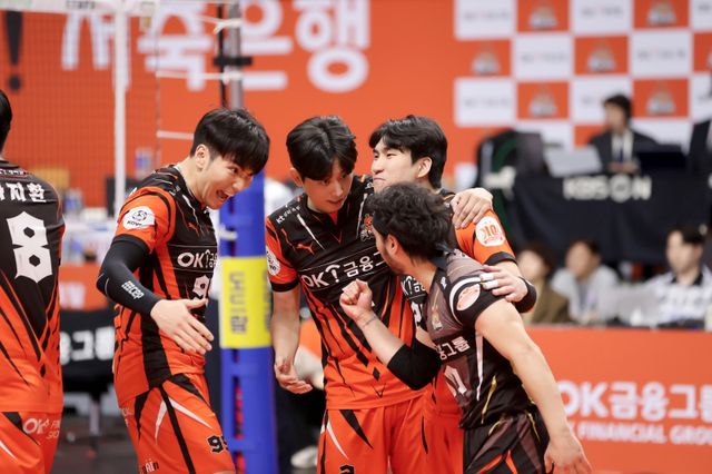 남자 프로배구 OK금융그룹은 바로 전 경기였던 지난달 28일, 1위 도약을 노리는 우리카드에 3-2로 신승을 거뒀다.