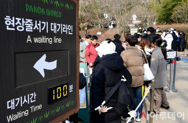 아시아투데이 박성일 기자 = 3일 오전 경기 용인시 에버랜드에서 다음 달 중국으로 돌아가는 자이언트 판다 '푸바오'의 마지막 모습을 보기 위해 관람객들이 입장을 대기하고 있다. 푸바오는 오는 4일부터 중국으로 이동할 준비에 들어간다. 사진공동취재단