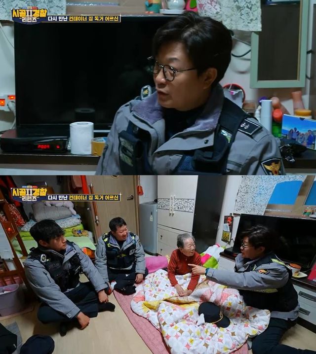 업무를 마친 뒤 이들은 “주포면에 온 김에 뵙고 싶은 분이 있다”며 소장의 허락을 구한다. 순경들이 향한 곳은 지난 방송에서 김성주, 정형돈이 방문했던 95세 어르신의 컨테이너 집. 당시 두 사람은 창문 틈새 정비, 뽁뽁이 부착 등 방한 작업을 진행한 바 있다.