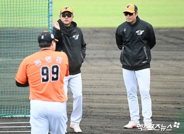 이날은 한화의 '레전드 타자' 김태균 현 KBSN스포츠 해설위원이 한화의 스프링캠프지 고친다구장을 찾은 날이기도 했다. 야구장에서 오랜만에 만난 김태균과 류현진 두 사람은 소회를 나눴고, 김태균 해설위원은 류현진의 라이브피칭을 지켜보며 이런저런 목소리를 내기도 했다.