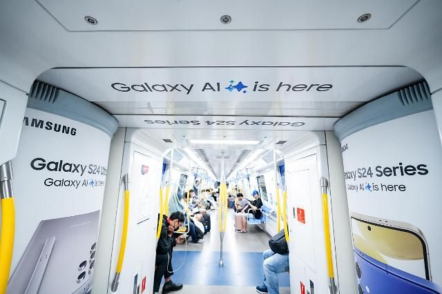 据三星电子4日消息,集团与马来西亚吉隆坡城市轻轨(MRT)合作,自上月29日起将位于金融购物中心的TRX地铁站重新命名为“TRX三星Galaxy站”(TRX Samsung Galaxy Station)。图为三星在车厢内投放的新款旗舰手机Galaxy S24广告。