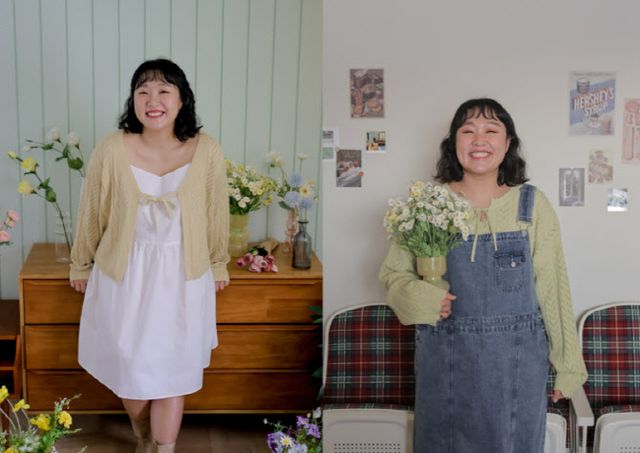 나들이룩의 교과서로 불리는 핑크 색상 가디건과 화이트 색상 플리츠 롱원피스의 살랑거림이 만연한 봄 기운을 불러일으키며, 풍경 속 꽃들과 함께 있을 경우 사랑스러움은 배가 된다. 또한 굽 높은 하이힐 보다 아우터와 동일한 색상의 플랫슈즈를 착용한다면 과하지 않으면서 선명한 포인트를 줄 수 있다.