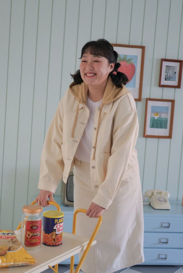 면 소재의 아이보리 컬러 셋업은 화사하면서 캐주얼한 무드가 돋보이는 룩으로, 출근룩을 포함한 데일리룩에 제격이다. 귀엽고 사랑스러운 컨셉을 더욱 업시키고 싶다면 후드를 부착하여 포인트 주는 것을 추천한다.