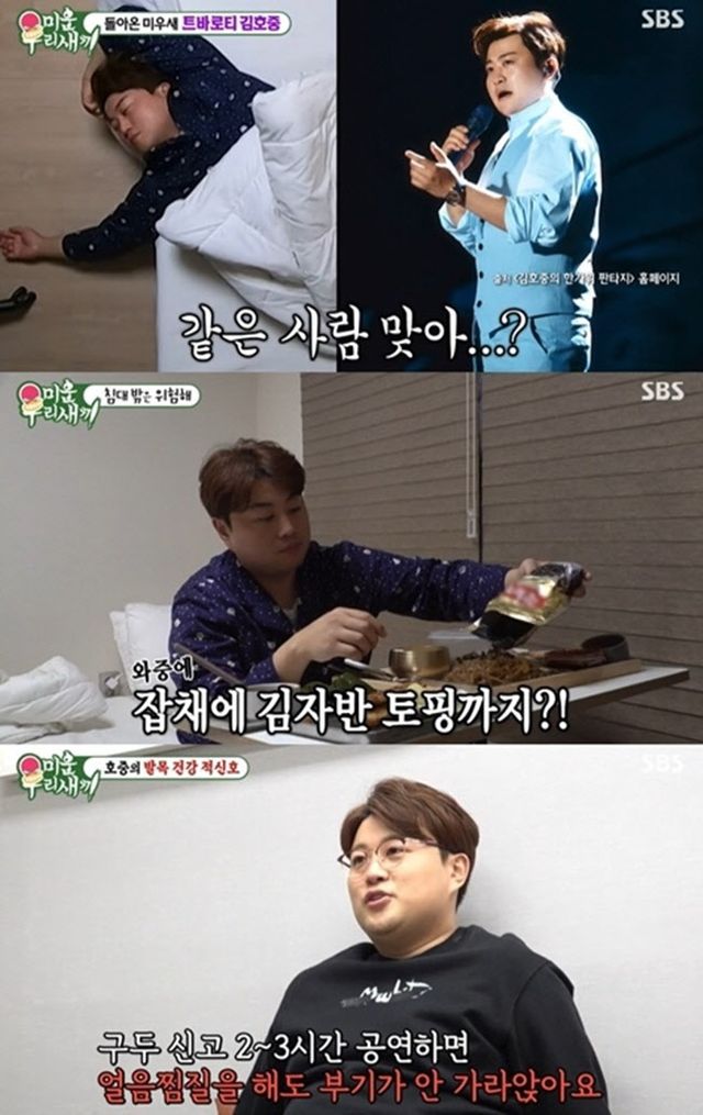 지난 3일 방송된 SBS ‘미운 우리 새끼’에서는 김호중의 새 집과 건강상태가 공개됐다.