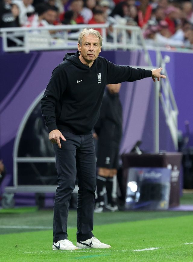 위르겐 클린스만 감독이 6일(현지 시각) 카타르 알라이얀 아흐메드 빈 알리 스타디움에서 열린 2023 아시아축구연맹(AFC) 카타르 아시안컵 준결승 요르단과 대한민국의 경기에서 작전 지시를 하고 있다. / 뉴스1