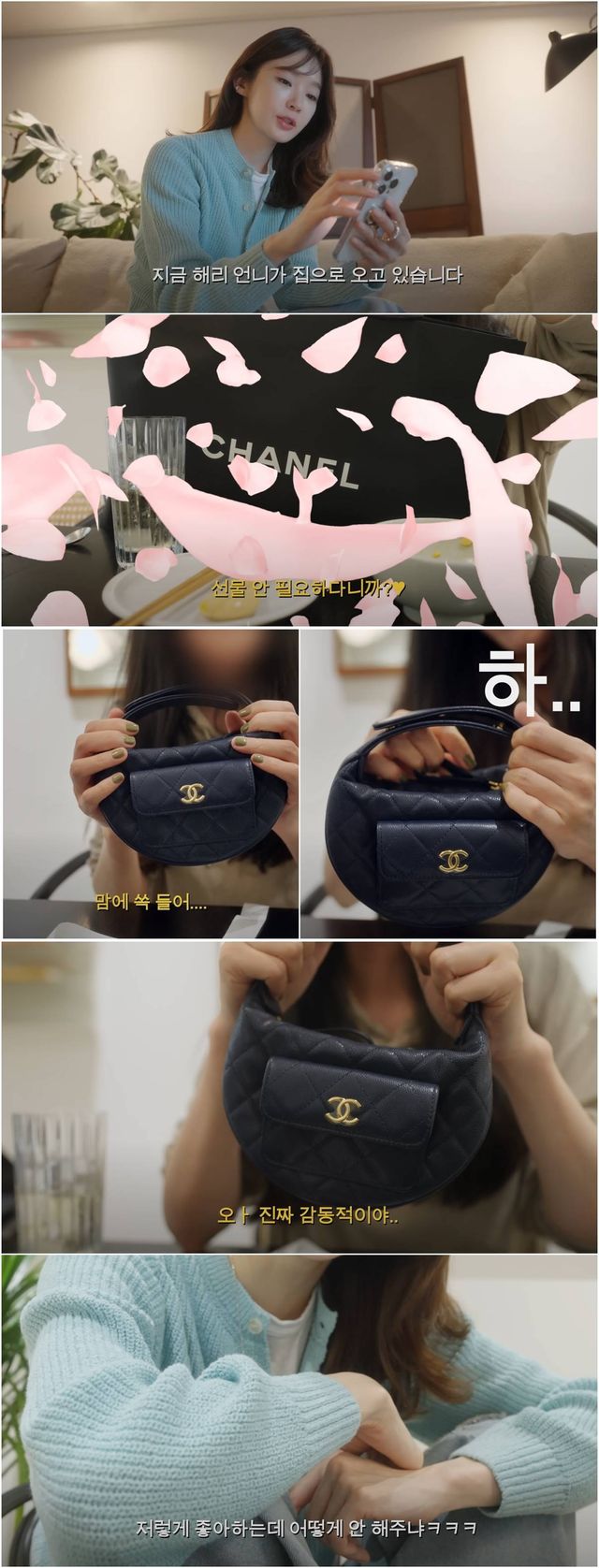 쇼핑백을 열어본 이해리는 샤넬의 700만 원대 명품 미니 백을 보고 깜짝 놀랐다.