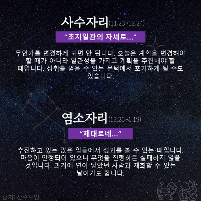 싱글인 분이라면 영화처럼 달콤한 사랑이 다가오는 날입니다. 하지만 그러한 당신을 질투 어린 시선으로 누군가 바라볼 수 있겠네요. 동성의 친구들 중 사수자리의 태클을 잘 피해야 성공 확률이 높아집니다.