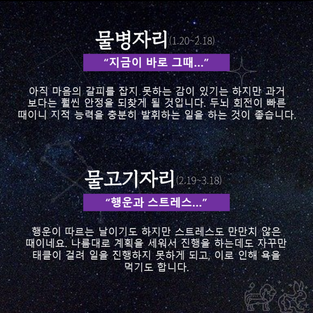 행운이 따르는 날이기도 하지만 스트레스도 만만치 않은 때이네요. 나름대로 계획을 세워서 진행을 하는데도 자꾸만 태클이 걸려 일을 진행하지 못하게 되고, 이로 인해 욕을 먹기도 합니다.