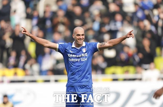 충남 아산과 K2리그 개막전에서 멀티골을 터뜨려 1라운드 MVP에 선정된 수원 삼성의 뮬리치./K리그