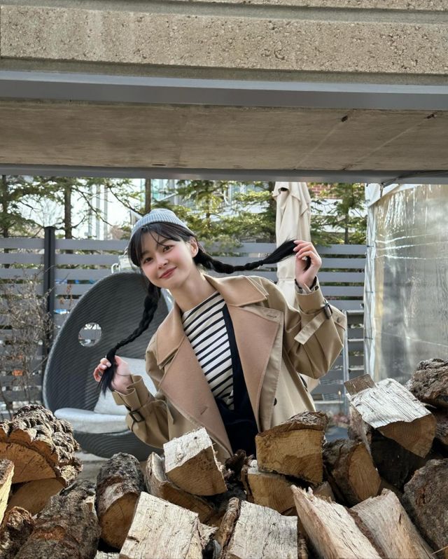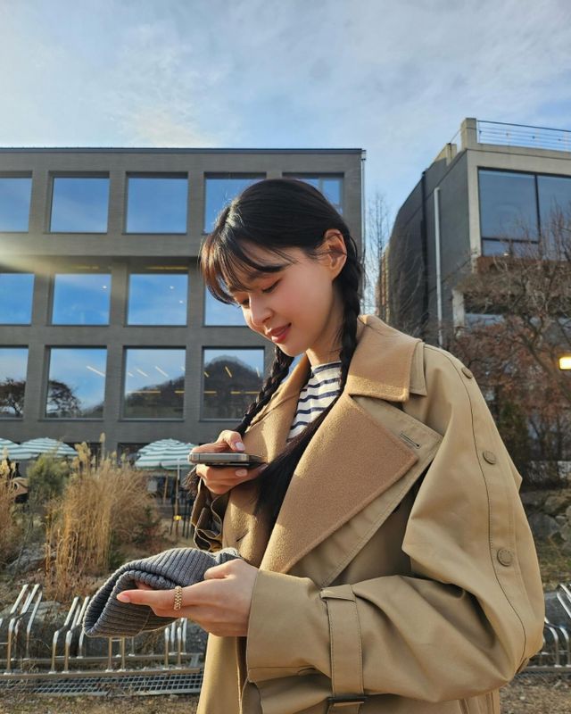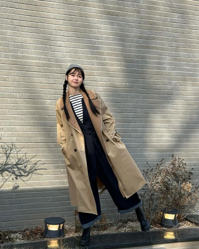 공개된 사진 속 권나라는 산뜻한 스트라이프 패턴 티셔츠에 루즈핏 데님 점프슈트를 입고, 베이지색 트렌치코트를 아우터로 착용해 센스 넘치는 간절기 패션을 선보였다.
