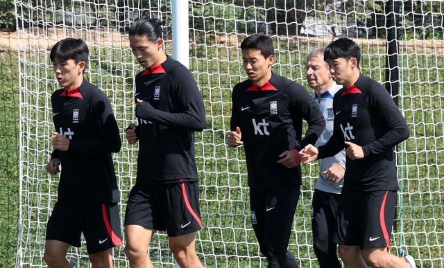 대한민국 축구대표팀 황인범, 조규성, 김태환, 손흥민과 위르겐 클린스만 감독 / 뉴스1