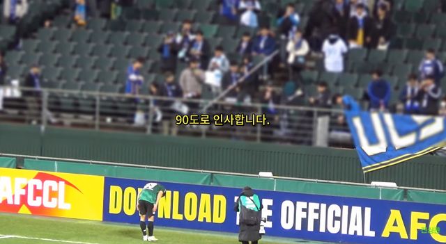 울산 팬들을 향해 90도로 인사한 김태환 / 유튜브 '전북현대상영관'