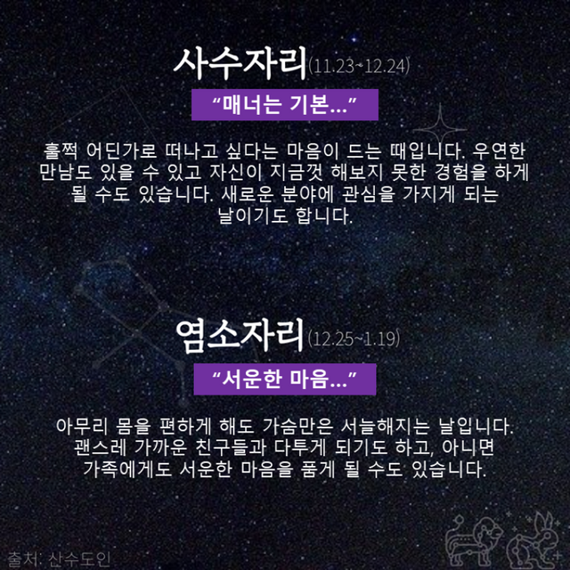 방바닥이 꺼져 라고 한숨을 쉬면서 궁상을 떨 수 있는 날입니다. 그리움과 외로움이 당신을 휘어잡을 수도 있고요. 이럴 때일수록 어깨를 활짝 펴고 바깥 공기를 많이 쐴 수 있도록 하세요.