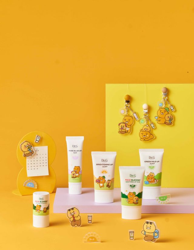 카카오프렌즈 인기 캐릭터 라이언과 춘식이 IP를 활용한 선 케어 에디션 5종이다. ▲그린 마일드 업 선 플러스 ▲브라이트닝 업 선 플러스 ▲레드 블레미쉬 수딩 업 선 ▲레드 블레미쉬 수딩 업 선 스틱 ▲포어 블러 업 선 등이다.