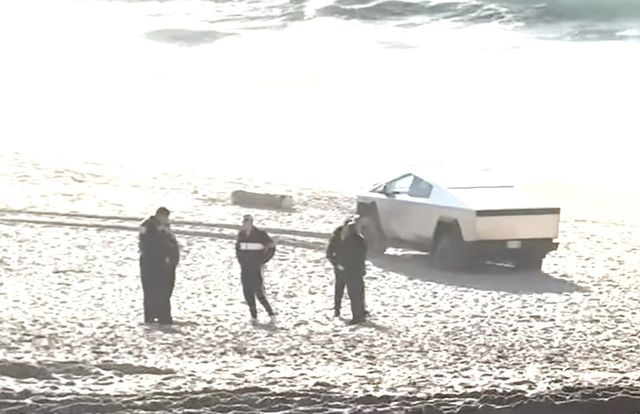 해변에서 사이버트럭을 주행하려다 실패한 운전자는 결국 모래에 갇혀서 물에 가까이 가지도 못했다. 공원 관리인들이 현장에 나타나 허가 없이 해변에서 운전하는 것은 불법이라고 알렸다.