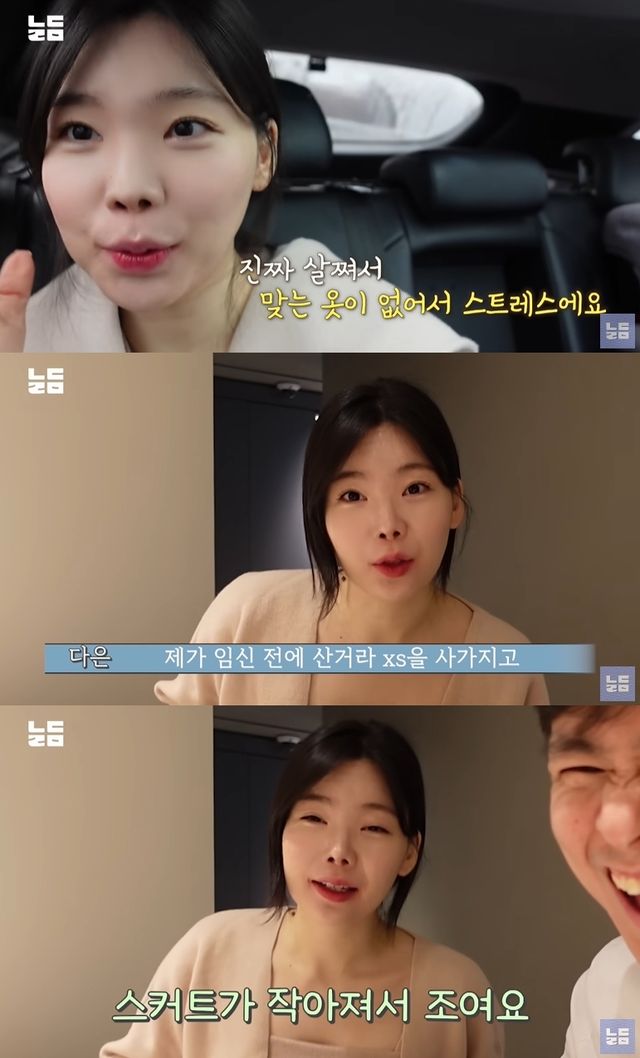 공개된 영상에서 이다은은 "임신 4개월에 7kg면 많이 찐 편이다. 맞는 옷이 없어서 스트레스다"라며 "스커트가 작아져서 조인다. 임신 전에 산거라 XS을 사서 배를 압박하고 있다"고 토로했다.