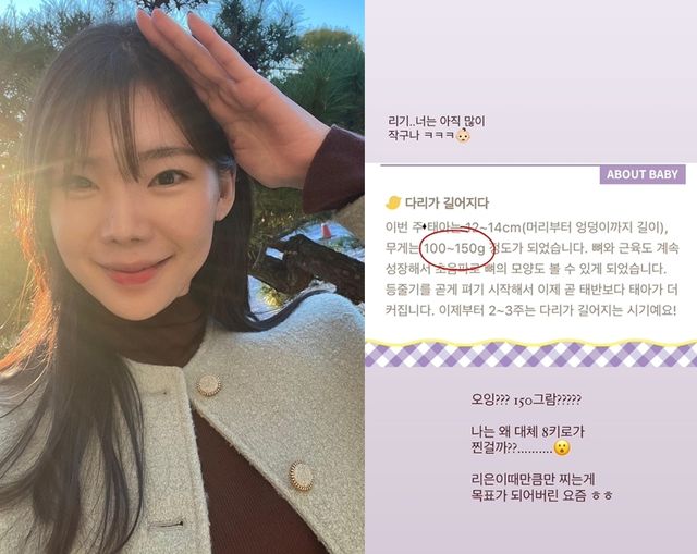 6일 이다은은 임신 중인 태아의 무게가 100~150g이라는 정보를 깜짝 공개했다.