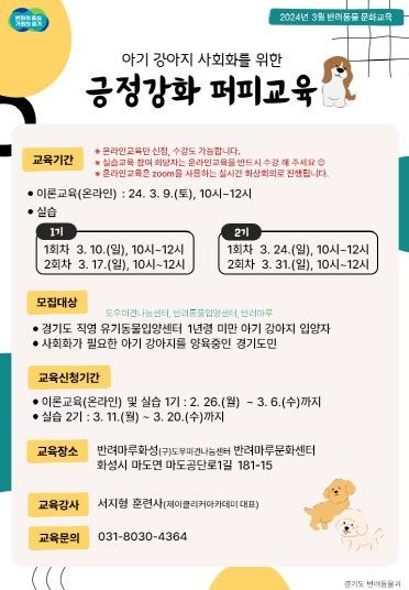 교육 신청과 자세한 사항은 경기도동물복지보호플랫폼에서 확인이 가능하다.