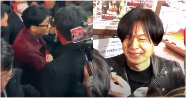 유튜버들도 주진우를 향해 휴대전화 카메라를 돌렸고, 주진우는 두리번거리며 웃어 보였다.