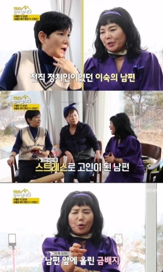 [메디먼트뉴스 김진우 기자] 배우 이숙(67)이 7일 방송된 KBS2 '박원숙의 같이 삽시다 시즌3'에서 30년 전 사별한 정치인이었던 남편과의 이야기를 공개했다.