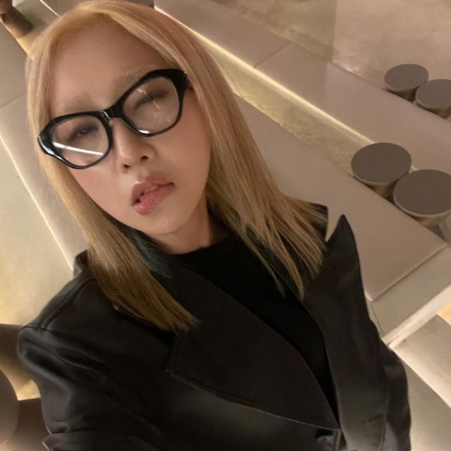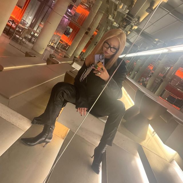 공개된 사진 속 공민지는 화려한 큐빅 장식이 더해진 블랙 톱에 가죽 재킷과 팬츠, 앵클부츠와 뿔테 안경까지 모두 올블랙으로 시크하면서도 힙한 스타일링을 완성했다.