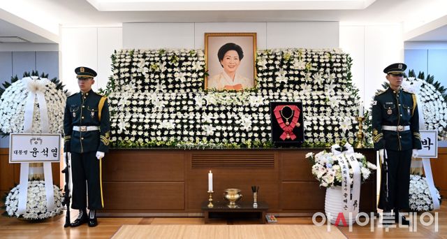 아시아투데이 박성일 기자 = 김영삼 전 대통령의 부인 고(故) 손명순 여사의 빈소가 8일 서울 종로구 서울대병원 장례식장에 마련돼 있다. 손 여사는 숙환으로 지난해 12월부터 서울대병원에서 입원치료를 받아오다 전날 향년 95세로 별세했다.